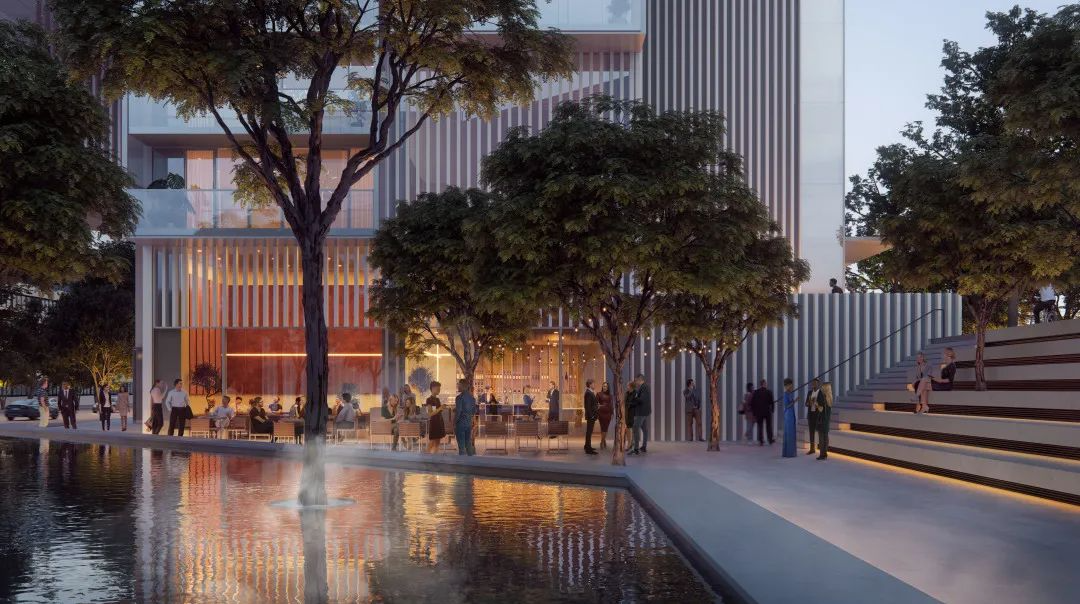 为了尊重场地的原始特征,设计保留了具有历史意义的水池及水景瀑布,同时创造了多个新的公共空间和通道,以确保广场的便利性和宜居性,从而恢复城市的公共价值——这也是奥雷·舍人所有项目的基石。